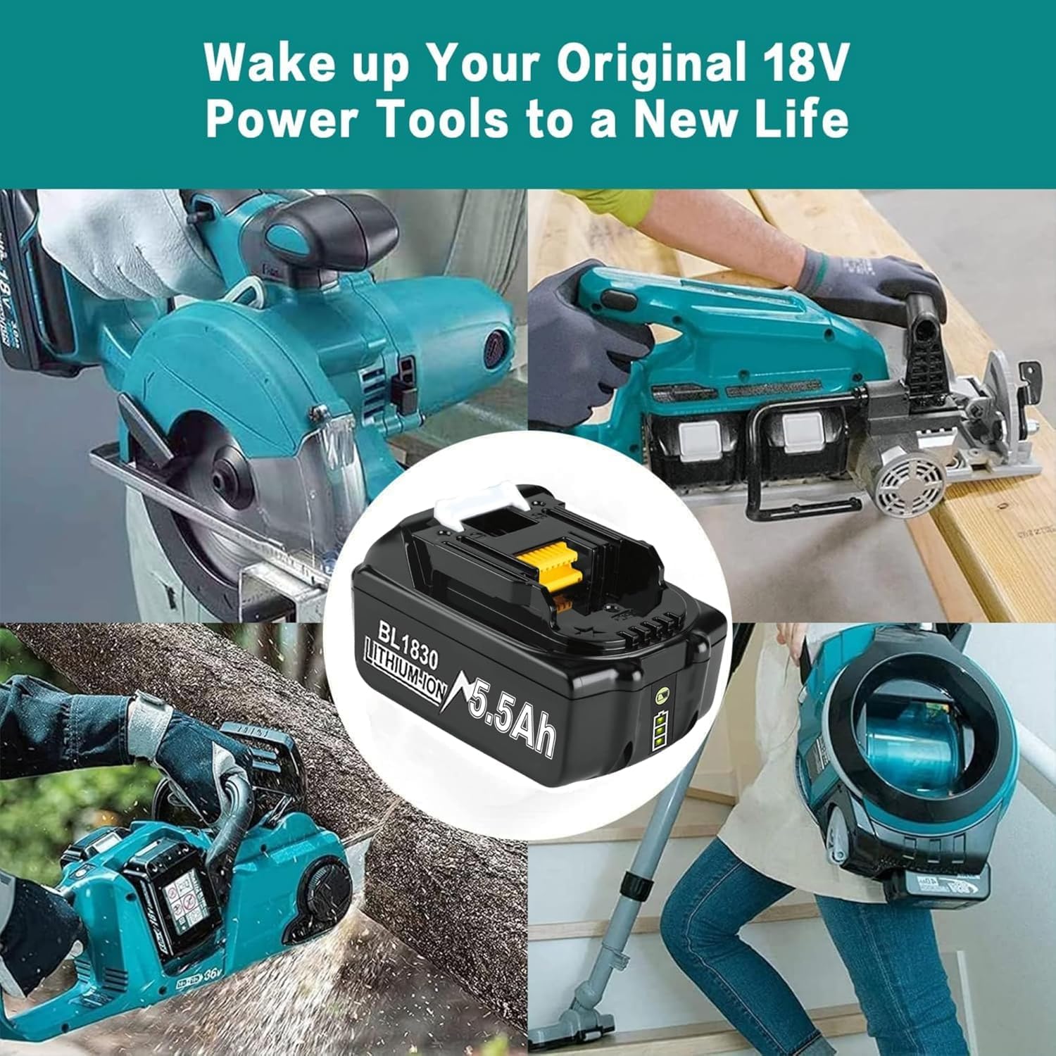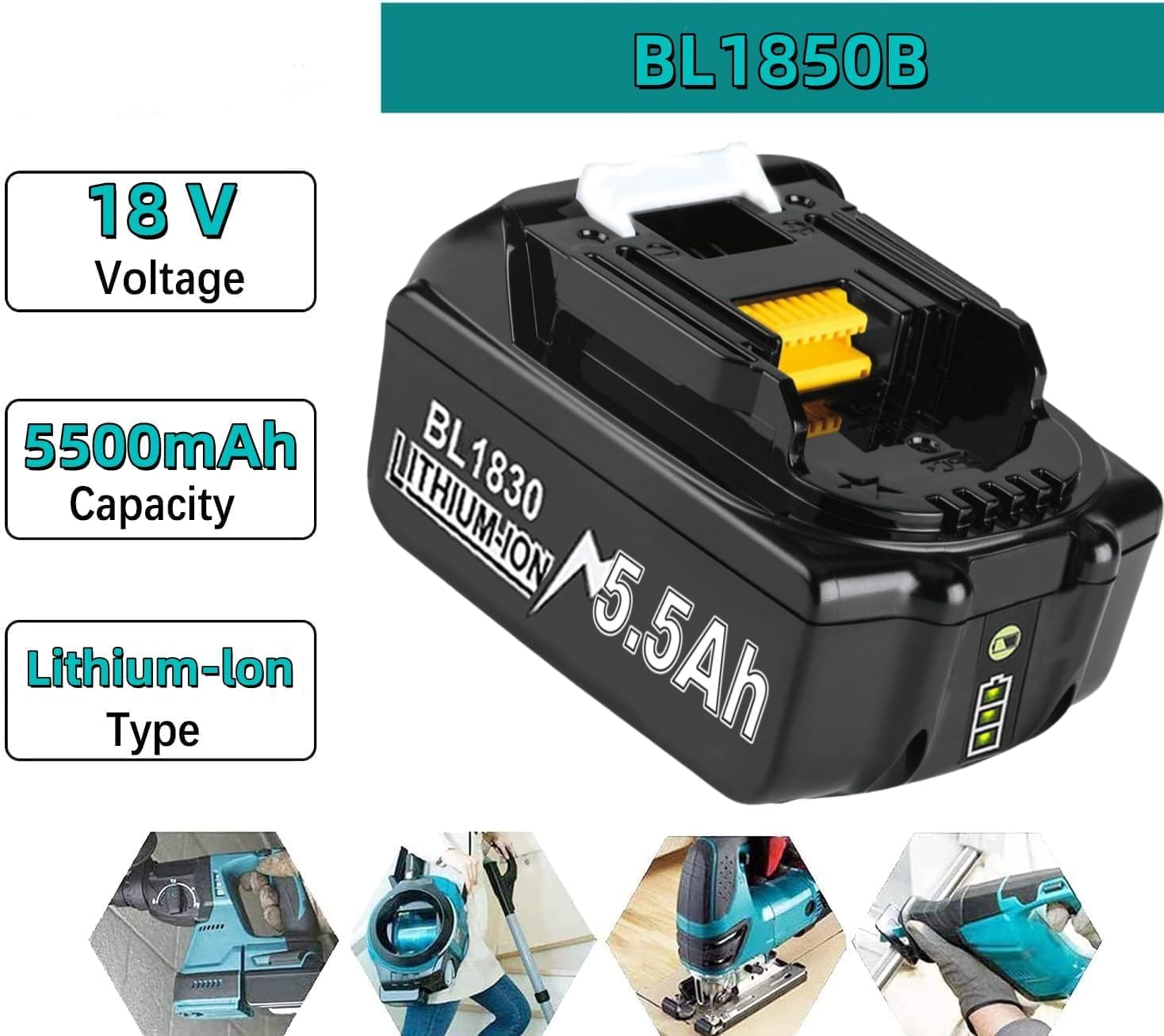 • Replacement for BL1860BBattery: Battery type: lithium-ion || Voltage: 18V || Capacity: 5.5Ah/5500mAh || Quantity: 4 x replacement battery for BL1860B18V.