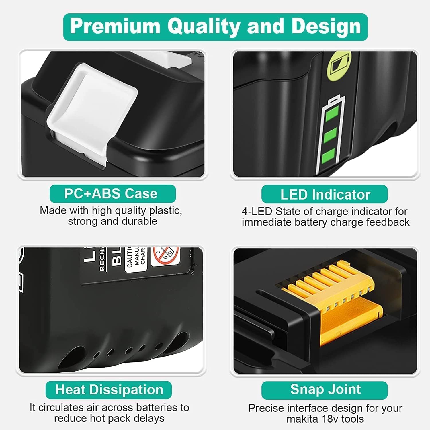 • Applicable Models: Compatible with BL1830 battery 18V BL1860B BL1860 BL1850B BL1850 BL1840B BL1840 BL1830B BL1830 BL1820 BL1815 BL1825 BL1835 BL1845 LXT-400.