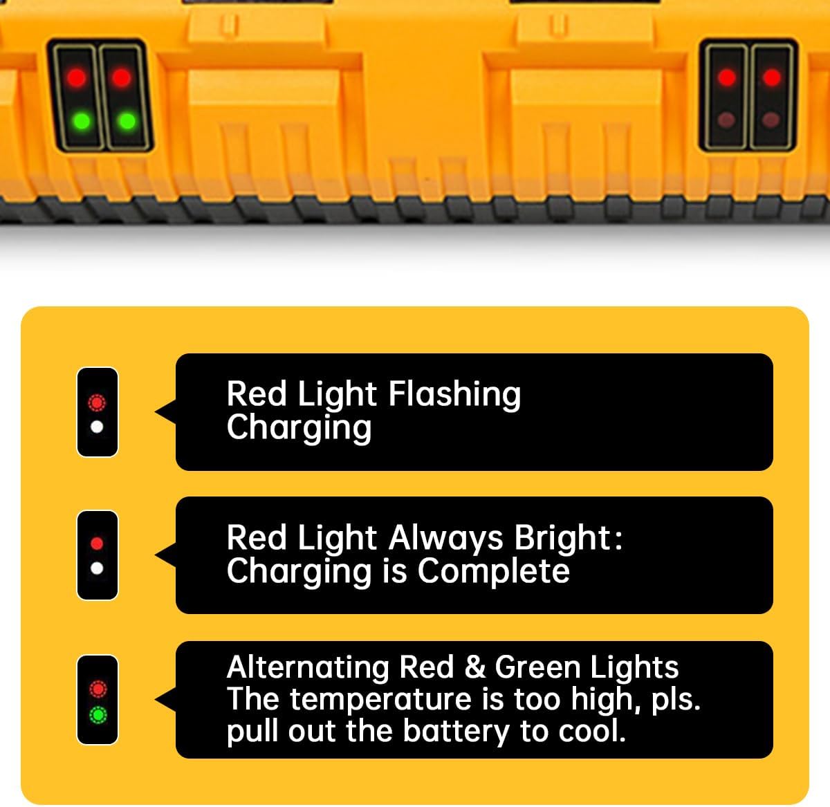 - 【Charger Specifications】Output: 12 ~ 20V | Charging Current: 3.0A | Input: 100 ~ 240V | Three-pin UK plug | Lithium-ion battery charger Compatible with Dewalt | charge four batteries simultaneously.