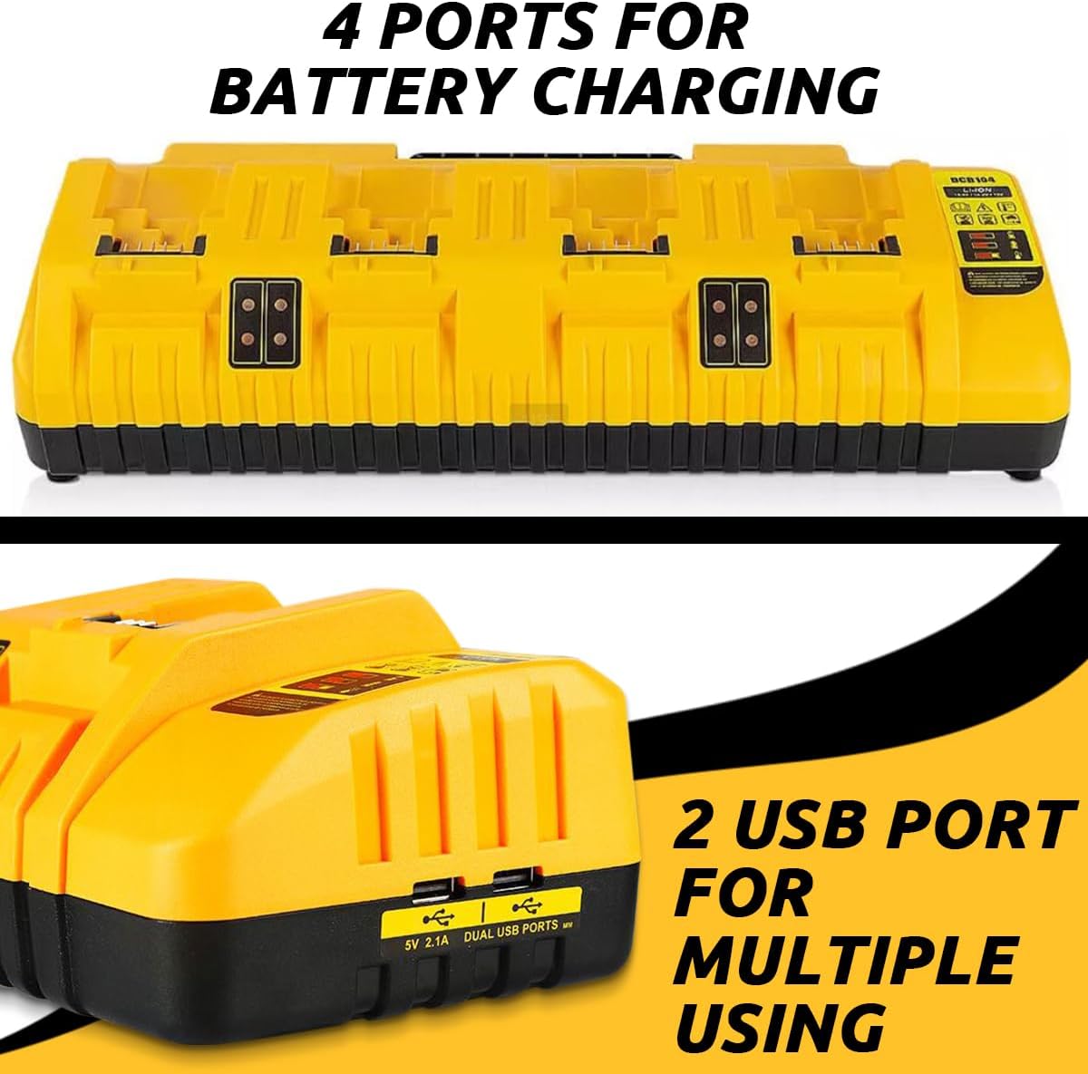 HomeEquipo ShopUncategorized4 Ports Battery Charger Compatible with Dewalt Battery, Battery Charger Replacement for Dewalt DCB Series Battery, 3.0A 12V 18V 20V MAX Li-ion Charger with double 2.1A USB Ports