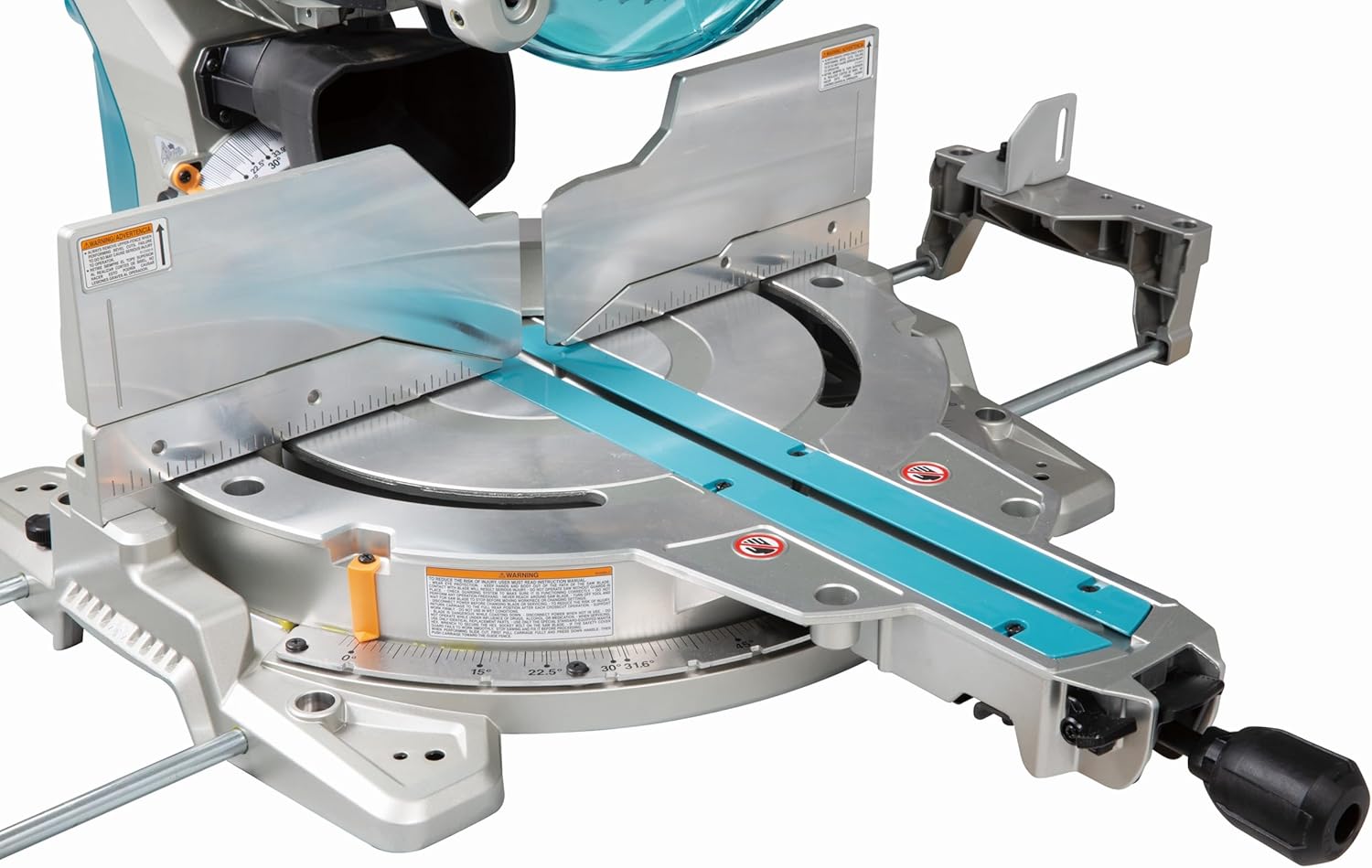 • Maximum mitre range 60 degrees to 60 degrees (left to right) with positive stops at 0, 15, 22.5, 31.6, 45 and 60 degrees left and right