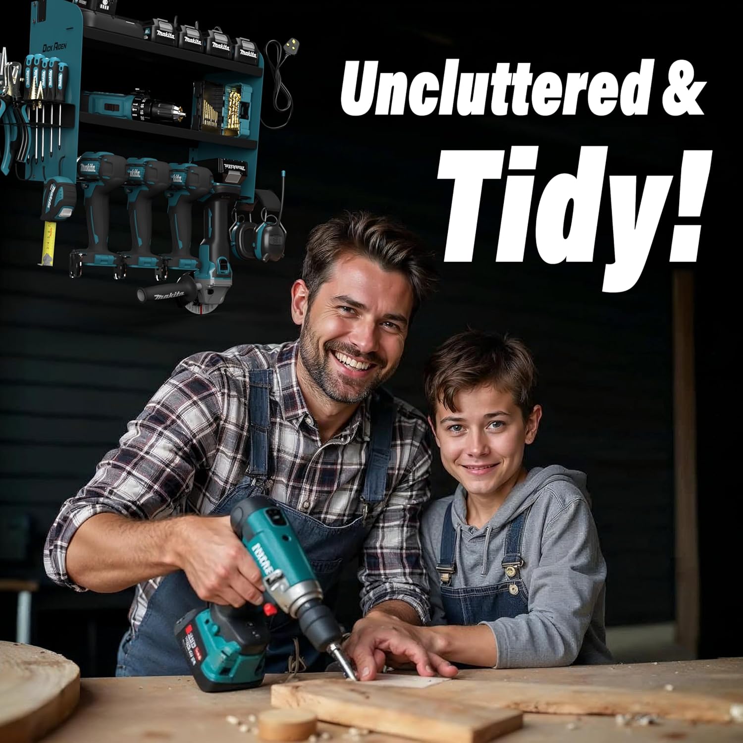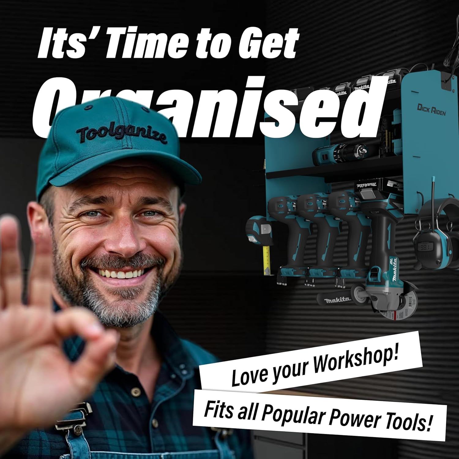 - ORGANISE YOUR GARAGE: The Toolganize power tool storage organiser with 6 way power strip from Dick Aiden will rack all your power tools neatly next to the charging station which means you’ll never lose your tools again – With this wall-mounted holder, you can charge batteries, organise, and store all your power tools, chargers, drills, screwdrivers, and accessories in one convenient location. This is the ultimate solution for all your garage storage needs! *** COMPATIBLE WITH MAKITA – POWER TOOLS & ACCESSORIES SHOWN ARE NOT INCLUDED WITH ITEM AND SHOWN FOR DEMONSTRATION PURPOSES ONLY.